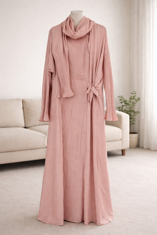 Crafted from soft, breathable cotton, this blush pink isdal is designed for all-day comfort. The lightweight fabric feels gentle on the skin, while the delicate pleated details add a refined, elegant touch.